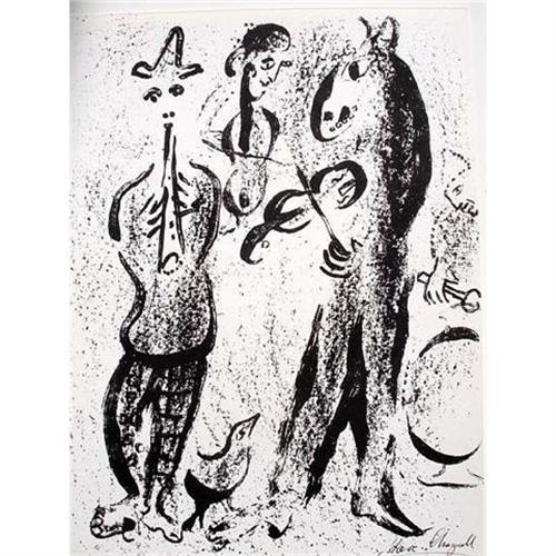 Original hand signed by Marc Chagall with indian ink, lower right. Lithograph from the book Chagall Lithograph II. Page from the book Lithograph II, Mourlot 391- 402. Provenance: Galerie les Tourettes, VIP-Signed Art Book Collection, Paris, Mourlot 391- 402. Editeur: Editeur Mourlot Frères, / André Sauret.