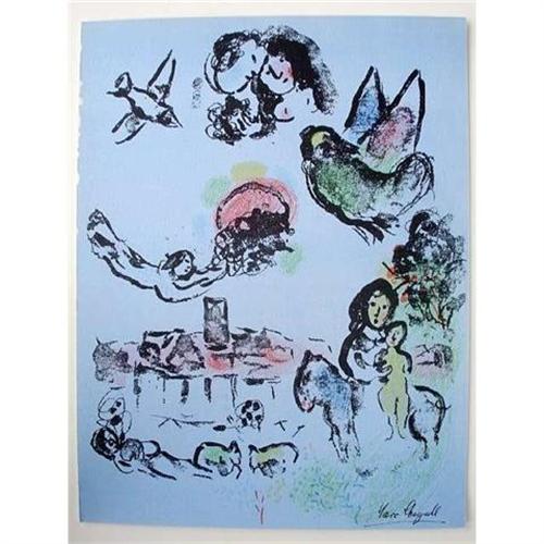 Original hand signed by Marc Chagall with indian ink, lower right. Lithograph from the book Chagall Lithograph II. Page from the book Lithograph II, Mourlot 391- 402. Provenance: Galerie les Tourettes, VIP-Signed Art Book Collection, Paris, Mourlot 391- 402. Editeur: Editeur Mourlot Frères, / André Sauret. Certificate of Authenticity from our Gallery