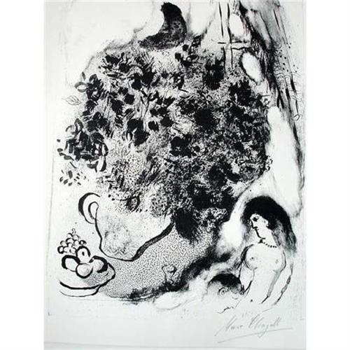 FROM THE BOOK "CHAGALL". Black, white and grey hand signed print.