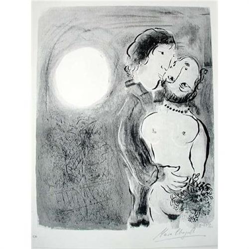 FROM THE BOOK "CHAGALL". Black, white and grey hand signed print.