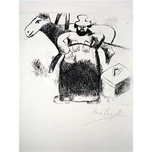 FROM THE BOOK "CHAGALL". Black, white and grey hand signed print.