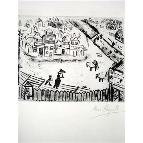 FROM THE BOOK "CHAGALL". Black, white and grey hand signed print.