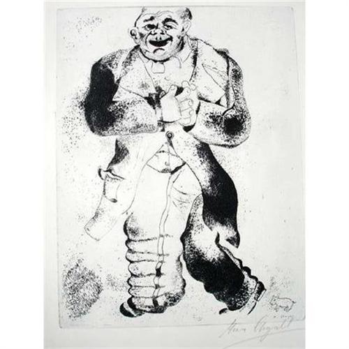 FROM THE BOOK "CHAGALL". Black, white and grey hand signed print.