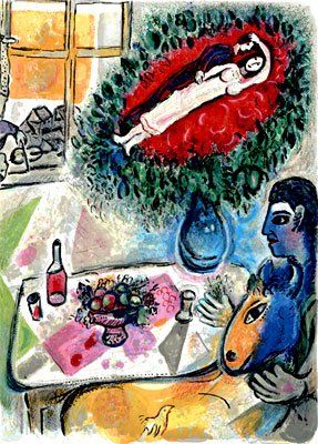 MARC CHAGALL "REVERIE" - LIMITED EDITION GICLEE' ON HEAVY ARCHIVAL WOVE PAPER - NUMBERED IN PENCIL - SIGNED IN THE PLATE - PROFESSIONALLY FRAMED AND MATTED - MINT - 22" X 17" APPX PAGE SIZE