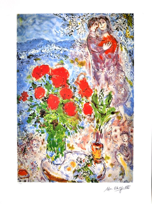 MARC CHAGALL Red Bouquet with Lovers Print, 363 of 500