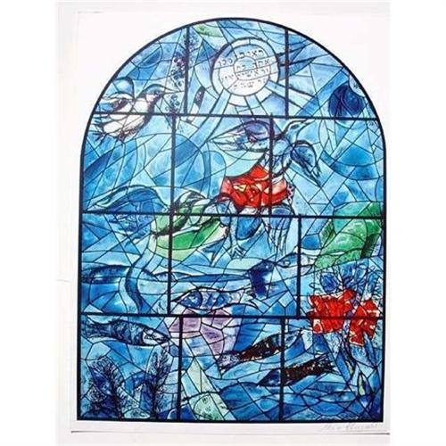 Hand signed by Marc Chagall with pencil, lower right. Provenance: Published by Robert Marteau, A.C.Mazo Editeur, Paris, Mourlot Frères, Paris. Helio lithograph from 1970, Page from the book "Les Vitreaux de Chagall 1957-1970. Certificate of Authenticity from our Gallery