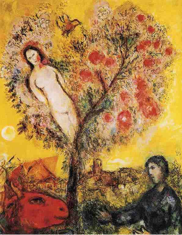 MARC CHAGALL "TREE OVER VILLAGE" - LIMITED EDITION GICLEE' ON HEAVY ARCHIVAL WOVE PAPER - NUMBERED IN PENCIL - SIGNED IN THE PLATE - PROFESSIONALLY FRAMED AND MATTED - MINT - 32" X 22" APPX PAGE SIZE