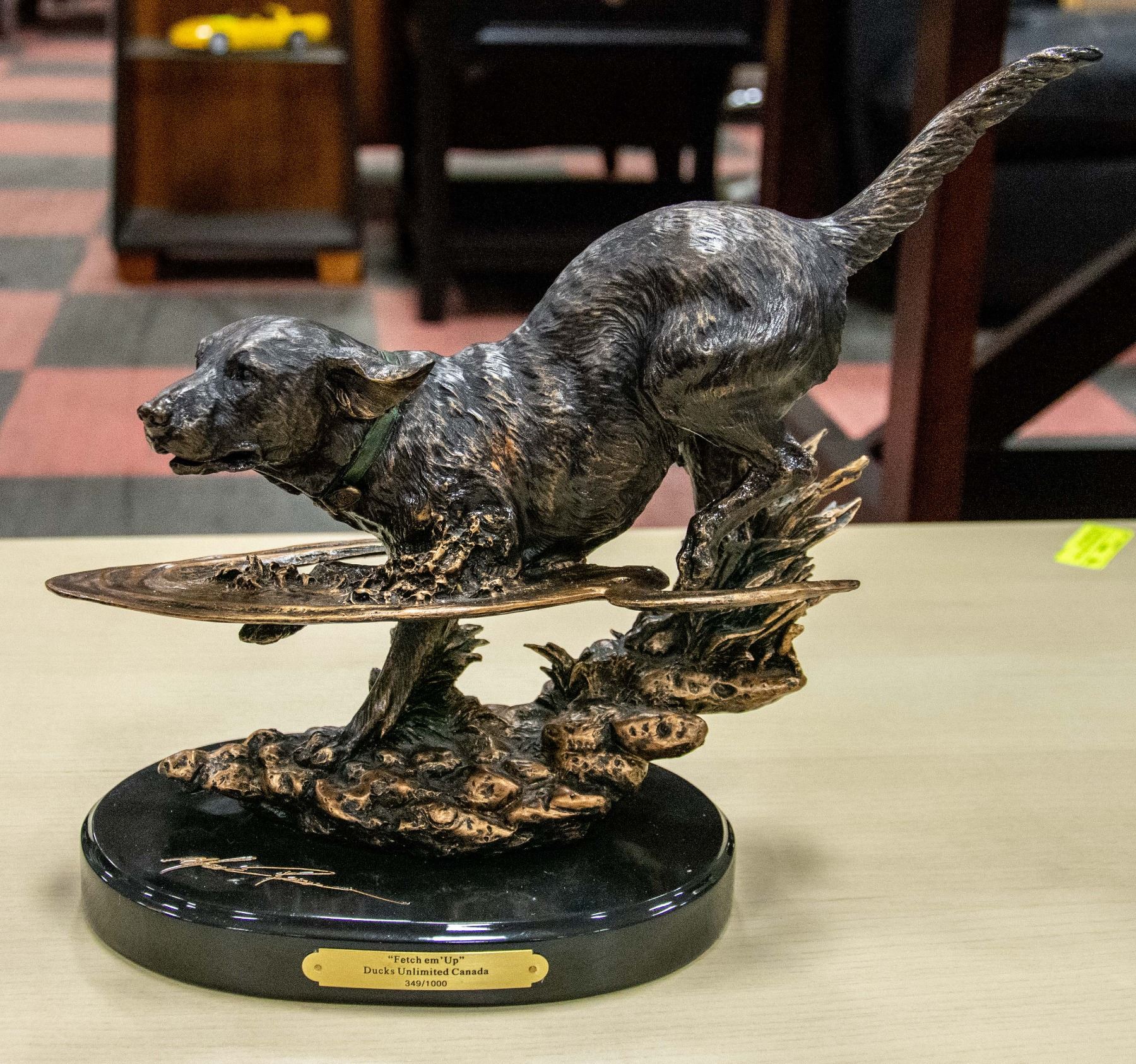 DUCKS UNLIMITED SPONSORED LIMITED EDITION FAUX BRONZE SCULPTURE; #349/1000; HEAVY 7 LBS