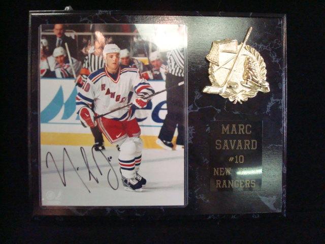 MARC SAVARD Autographed Photo Plaque: 8 x 10 Color Photograph with Autograph of Ranger's #10. (50-100)
