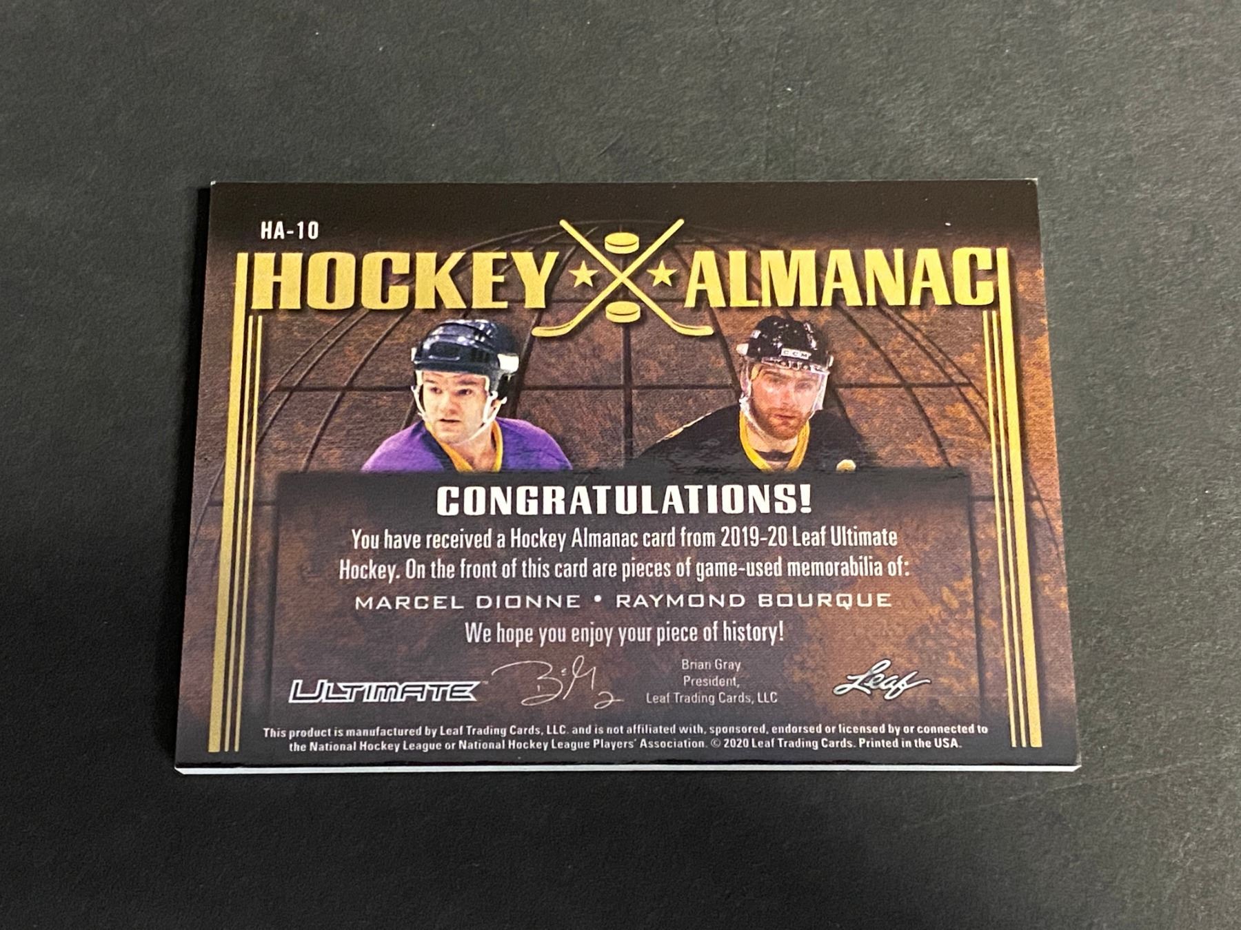 MARCEL DIONNE & RAYMOND BOURQUE ULTIMATE HOCKEY ALMANAC CARD