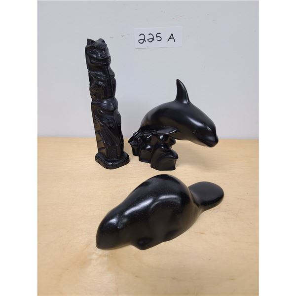 THREE PIECES WEST COAST NATIVE CARVED PEARLITE