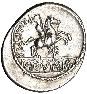 MARCIA. Denario. Roma (56 a.C.). R/ Estatua ecuestre a der. sobre acueducto; A.Q.V. A. MAR.(en monograma). FFC-894. SB-28. Algo descentrada. MBC+.