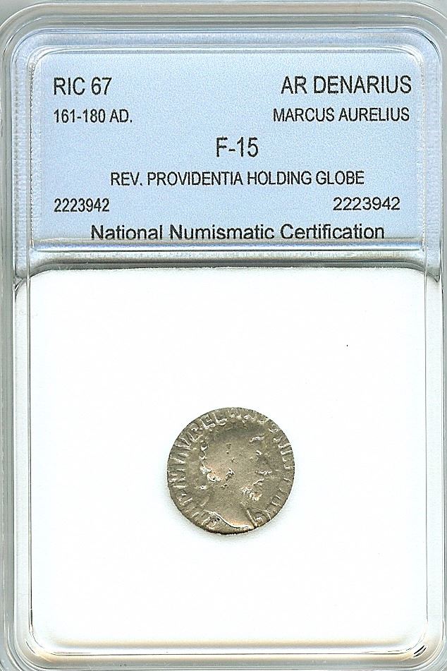 MARCUS AURELIUS 161-180 AD. SILVER DENARIUS RIC#67, PROVIDENTIA NNC F15