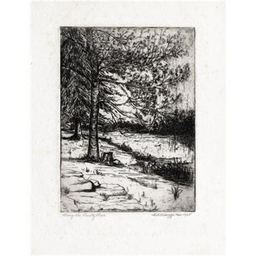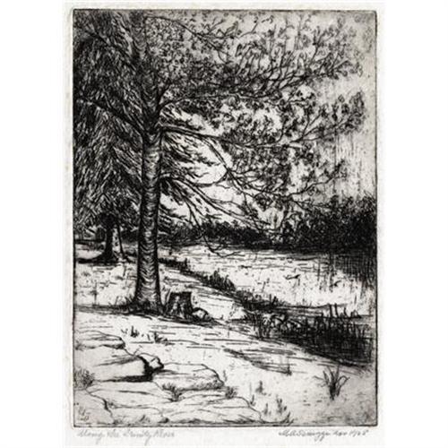 <B>MARGARET CARRUTH SCRUGGS</B></I> <B>(1892-1988)<BR></B></I><I>Along the Trinity River</B></I>, Nov. 1925<BR>Etching on paper<BR>7 x 5 inches (17.8 x 12.7 cm)<BR>Signed and dated lower right<BR>Titled lower left<BR><BR> <B>Condition Report:</B> Excellent condition with very faint foxing in margins. Image area okay. Unframed.<BR><BR><b>Shipping:</b> Requires 3rd Party Shipping (<a target="_blank" href="http://www.heritageauctions.com/common/shipping.php">view shipping information</a>)