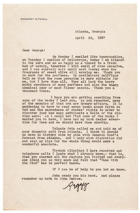 Margaret Mitchell Author of “Gone With the Wind” Thanks Its Film Director George Cukor for his Gift of Perfume
