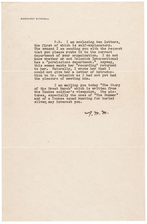 MARGARET MITCHELL Autograph, Author of “Gone With the Wind” Typed Letter Signed