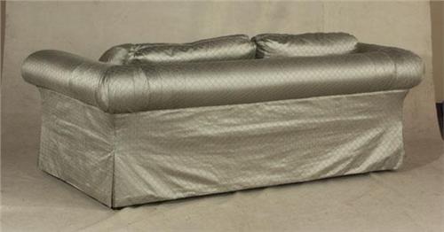 MARGE CARSON DESIGNER SOFA, TAUPE SILK UPHOLSTERY