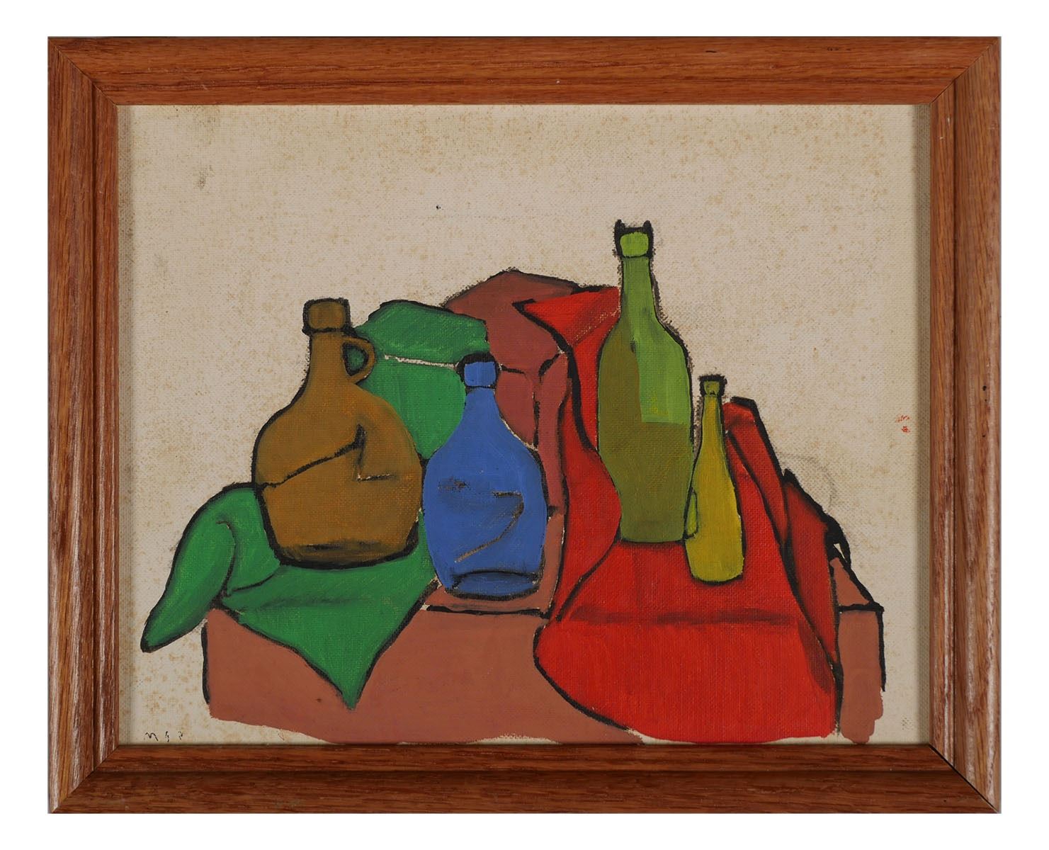 Stil life oil on board painting by Marianna Stockvig Peterson (American, 1932-2012). Signed verso and dated to 1953. Very good condition. Board measures 8" x 10".