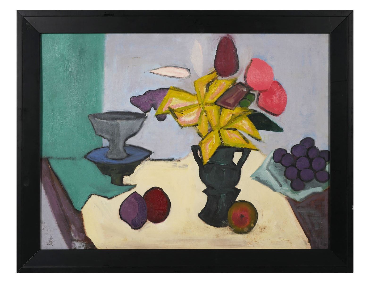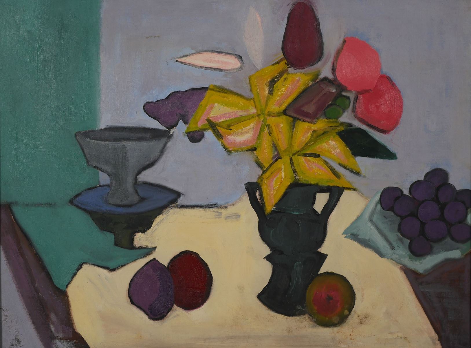 Stil life oil on board painting by Marianna Stockvig Peterson (American, 1932-2012). Signed verso and dated to 1952. Very good condition. Board measures 18" x 24".