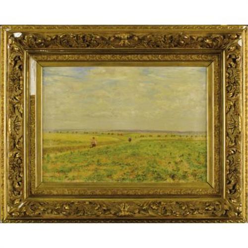 <B>MARIE FRANÇOIS FIRMIN-GIRARD </B></I>(French 1838-1921)<BR><I>Workers in the field</B></I><BR>Oil on linen<BR>15 x 22 inches (38.1 x 55.9 cm)<BR>Signed lower left: <I>Firmin-Girard</B></I><BR> <B>Condition Report:</B> Original unlined canvas, needs re-stretching, and with surface dirt<BR><BR><b>Shipping:</b> Requires 3rd Party Shipping (<a target="_blank" href="http://www.heritageauctions.com/common/shipping.php">view shipping information</a>