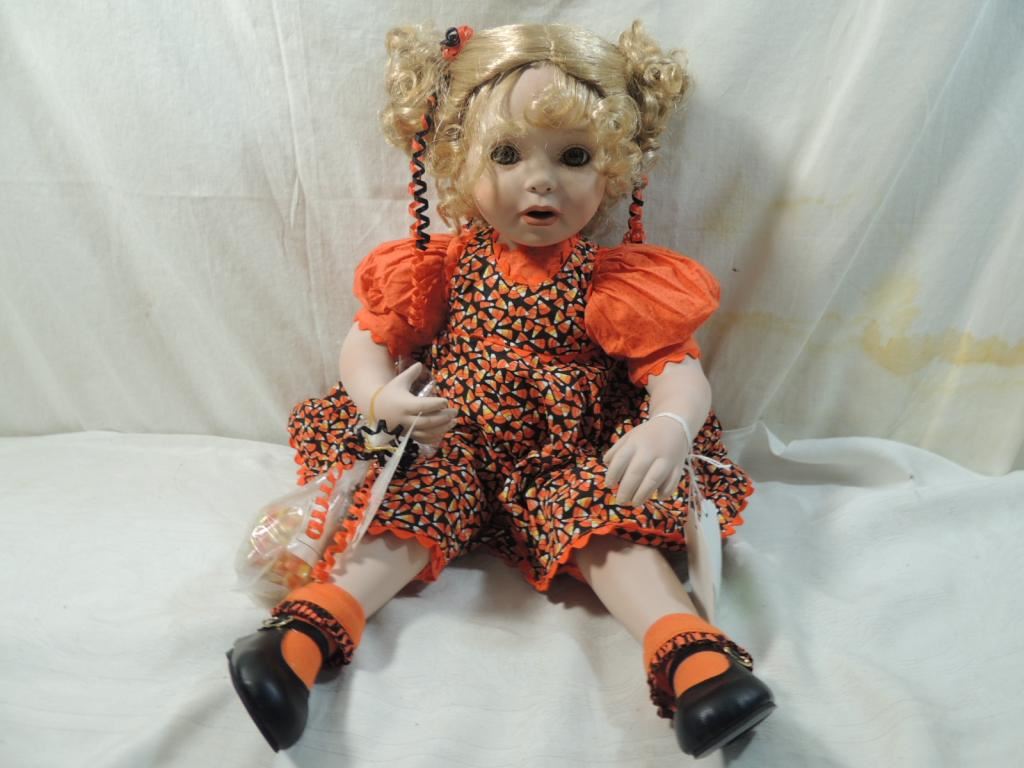 PORCELAIN DOLL, SEATED, SOLD OUT RETIRED DOLL COLLECTIBLE DOLL, DESIGNER DOLL, GREAT CONDITION, FROM PRIVATE DOLL COLLECTION, UNIQUE DOLL, VINTAGE DOLL, AS SHOWN SEE PHOTO FOR MORE DETAILS