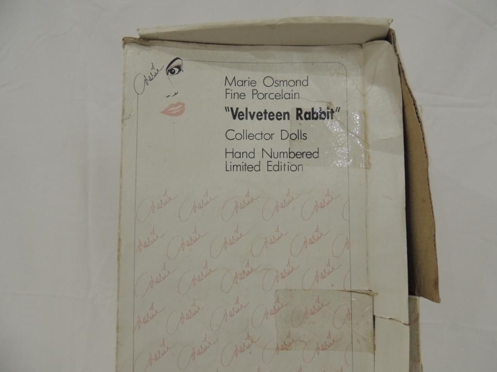 MARIE OSMOND FINE PORCELAIN "VELVETEEN RABBIT" COLLECTORS DOLLS HAND NUMBERED LIMITED EDITION. IN ORGINAL BOX. AS SHOWN. SEE PHOTO FOR MORE DETAILS.
