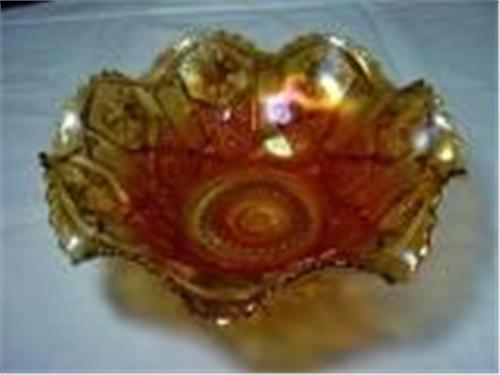 MARIGOLD PATTERN GLASS BOWL WITH RUFFLED RIM 3" X 7.25".
