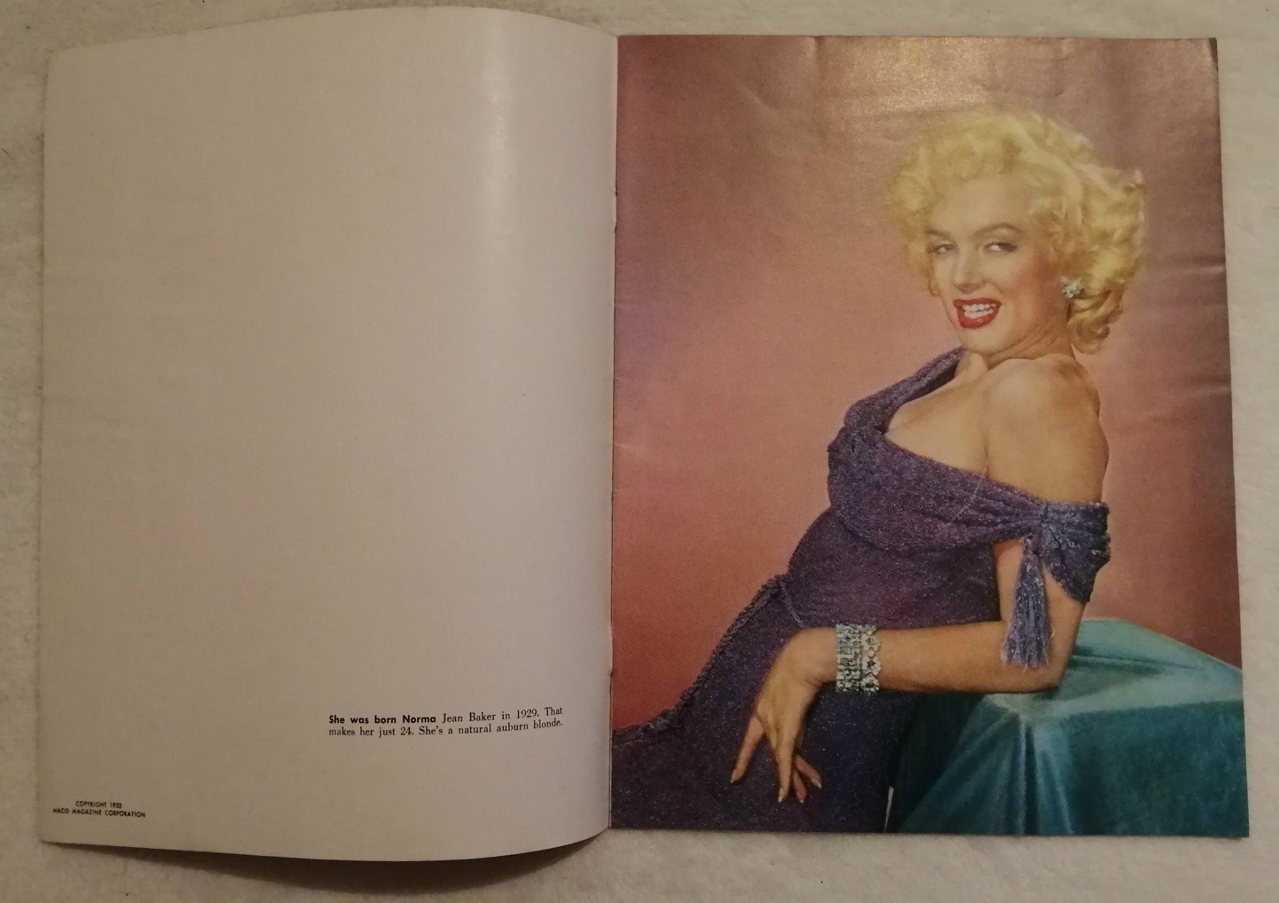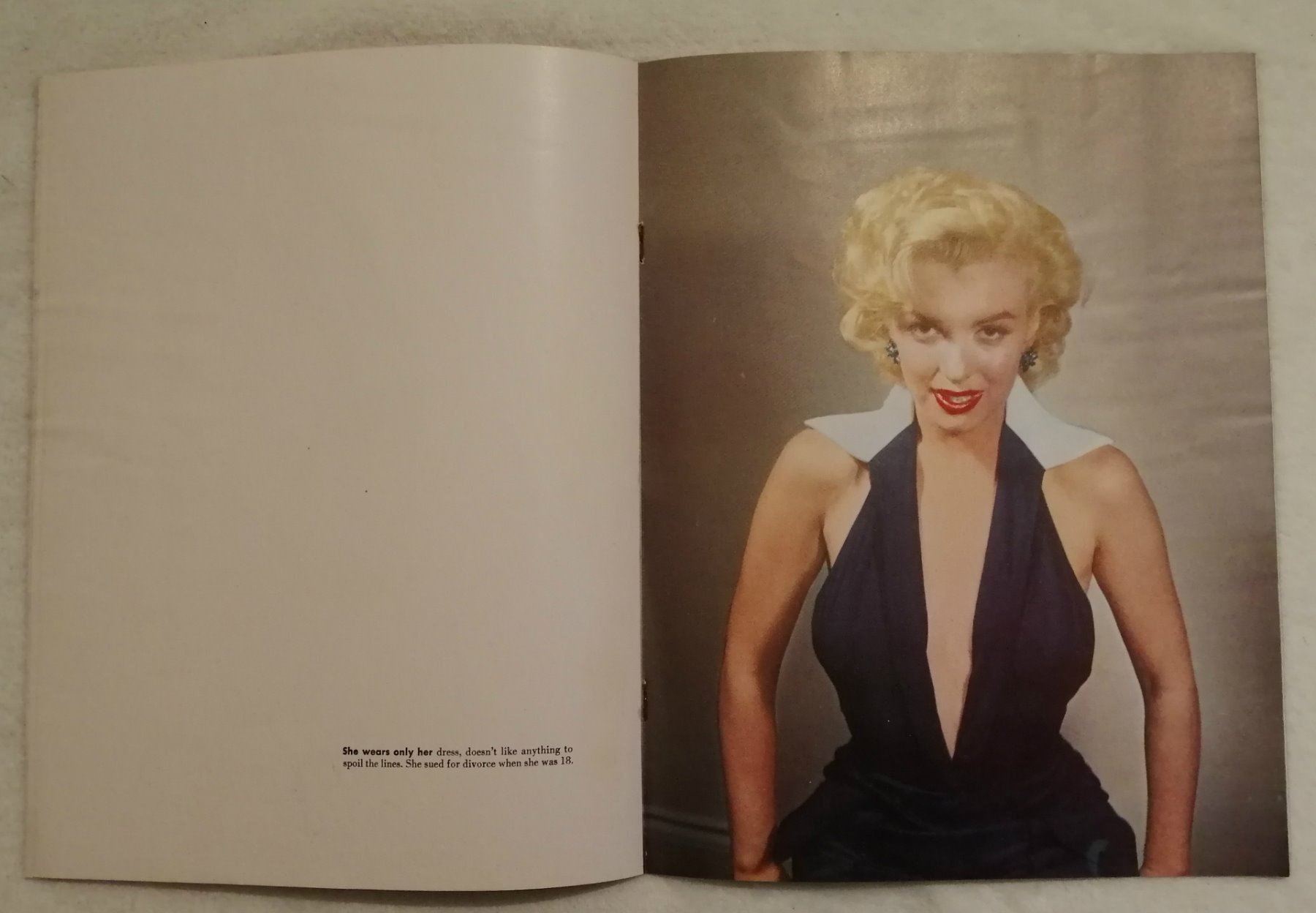A copy of the 1953 special magazine printed by the Maco Magazine Corporation. The special edition cost 35 cents and featured fifteen pages of colour and black and white images of Monroe, some rare images. Each image is accompanied by "facts" about Monroe, many of which are incorrect but they fit the studio's narrative of their star at this time, including the fact that she does not drink. The booklet also carries a three page spread of black and white images showing Monroe exercising and tells how she stays in shape.