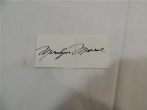 MARILYN MONROE CUT SIGNATURE AUTOGRAPH NO COA. AS SHOWN. VIEW PICTURE FOR DETAIL. PLEASE BE ADVISED, AND INFORMED REGARDING SIGNATURES OR AUTOGRAPHS THAT WE SELL AT AUCTION: WE ARE NOT AUTHENTICATORS, AND WE DO NOT AUTHENTICATE, OR VALIDATE ANY AUTOGRAPHS OR SIGNATURES THAT WE OFFER AT AUCTION. SOME AUTOGRAPHS OR SIGNATURES MAY COME WITH AN AUTHENTICATION FROM ANY ONE OF LITERALLY HUNDREDS OF AUTHENTICATORS ACROSS THE COUNTRY, AND AROUND THE WORLD. WE DO NOT ENDORSE ANY AUTHENTICATOR, NOR DO WE GUARANTEE THAT ANY AUTOGRAPH OR SIGNATURE IS AUTHENTIC, OR THAT IT WILL PASS AUTHENTICATION BY ANY AUTHENTICATOR. ALL AUTOGRAPHS OR SIGNATURES ARE SOLD