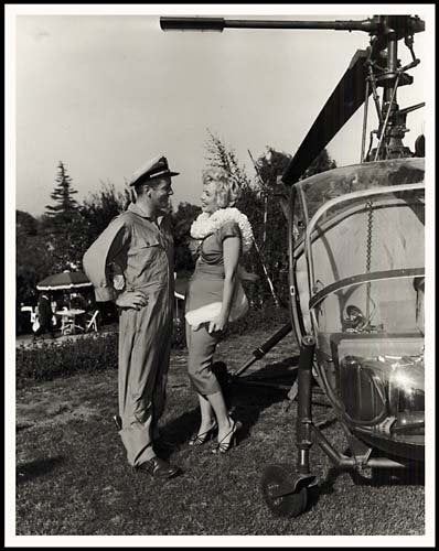 Marilyn speaking with pilot next to helicopter at an event. 52/53.