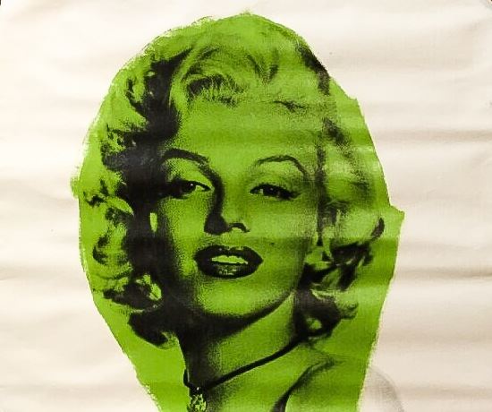 A SCREEN PRINT ARTWORK OF MARILYN MONROE CREATED AND SIGNED BY STEVE KAUFMAN. MR. KAUFMAN STUDIED UNDER AND ASSISTED ANDY WARHOL. MEASURES 28X25 INCHES.