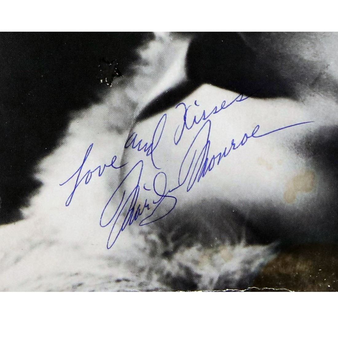 Marilyn Monroe signed 8 x 11 1953 Black and White Photograph by Frank Powolny. Marilyn Monroe represented sexuality in comedy and pop culture, with her films becoming a big part of it. She set the standard for blonde roles in Hollywood. Her voluptuous body, her platinum blonde hair with big curls, her sweet voice, and her ruby red lips has become a thing of legends. She brought on-screen and real-life innocence and childlike quality since the days of Jean Harlow in the ‘50s, making her sensual image all the more alluring. But more than that, she had a huge impact in the world of entertainment by being an A-list actress in her own right. She was born and raised in Los Angeles, Monroe spent most of her childhood in foster homes and an orphanage, she was married at age 16. She was working in a factory during WWII when she met a photographer from the First Picture Unit and began a successful pin-up modeling career, which led to short-lived film contracts with 20th Century Fox and Columbia Pictures. After a series of minor film roles, she signed a new contract with Fox and became a major box office star. This item has been proffesionally custom matted and framed and comes with a letter of authenticity issued by Guaranteed Forensic Authenticators along with the GFA guarantee of authenticity.