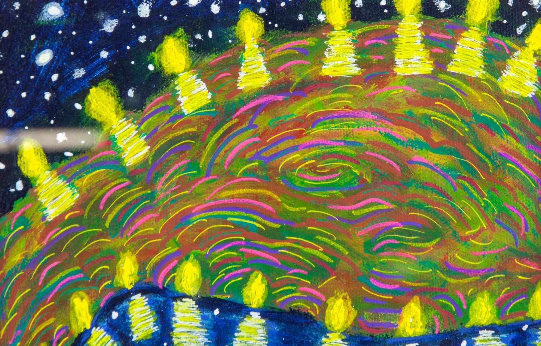 Oil on canvas. Signed and attr. Mario Schifano (Italian, 1934-1998). 8.3 x 7.5 inch (21 x 19 cm). Mario Schifano ( 20 September 1934, Khoms, Libya - 26 January 1998, Rome, Italy ) was an Italian painter and collagist of the Postmodern tradition. He also achieved some renown as a film-maker and rock musician. He is considered to be one of the most significant and pre-eminent artists of Italian postmodernism. His work was exhibited in the famous 1962 “New Realists” show at the Sidney Janis Gallery with other young Pop art and Nouveau realisme luminaries, including Andy Warhol and Roy Lichtenstein. He became part of the core group of artists comprising the “Scuola romana” alongside Franco Angeli and Tano Festa. Reputed as a prolific and exuberant artist, he nonetheless struggled with a lifelong drug habit that earned him the label maledetto, or “cursed.” PROVENANCE: Southern Ontario Estate