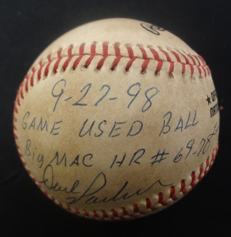 MARK MCGWIRE GAME USED BALL, 8x10 Photo & Dave Parker signed letter.
