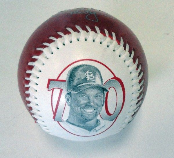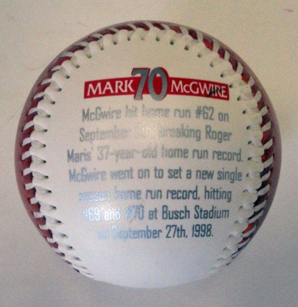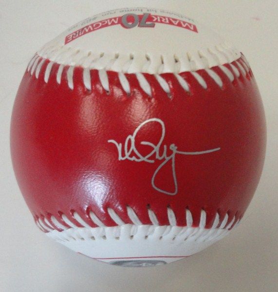 RED AND WHITE COMMEMORATIVE MARK McGWIRE 70th HOME RUN BALL