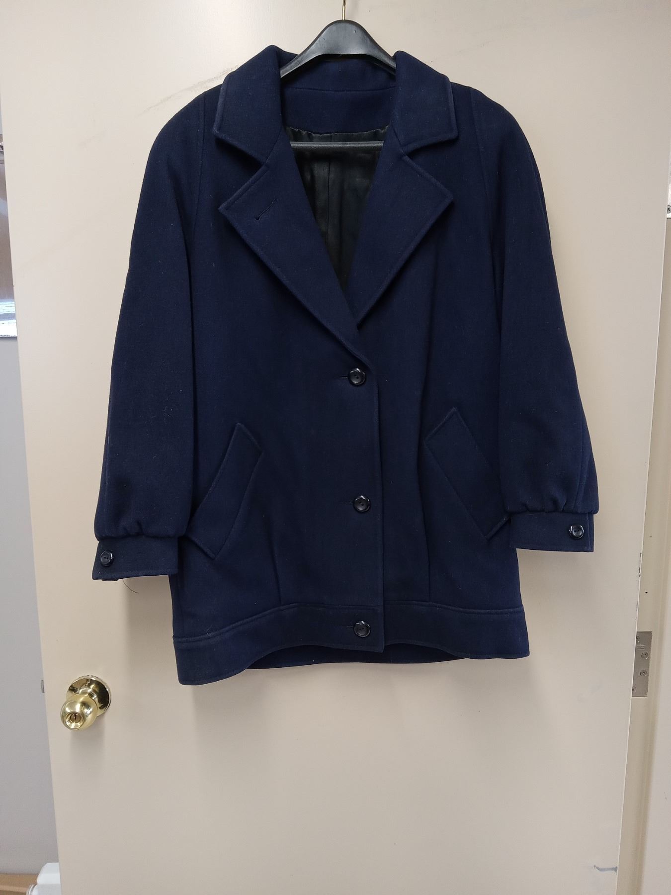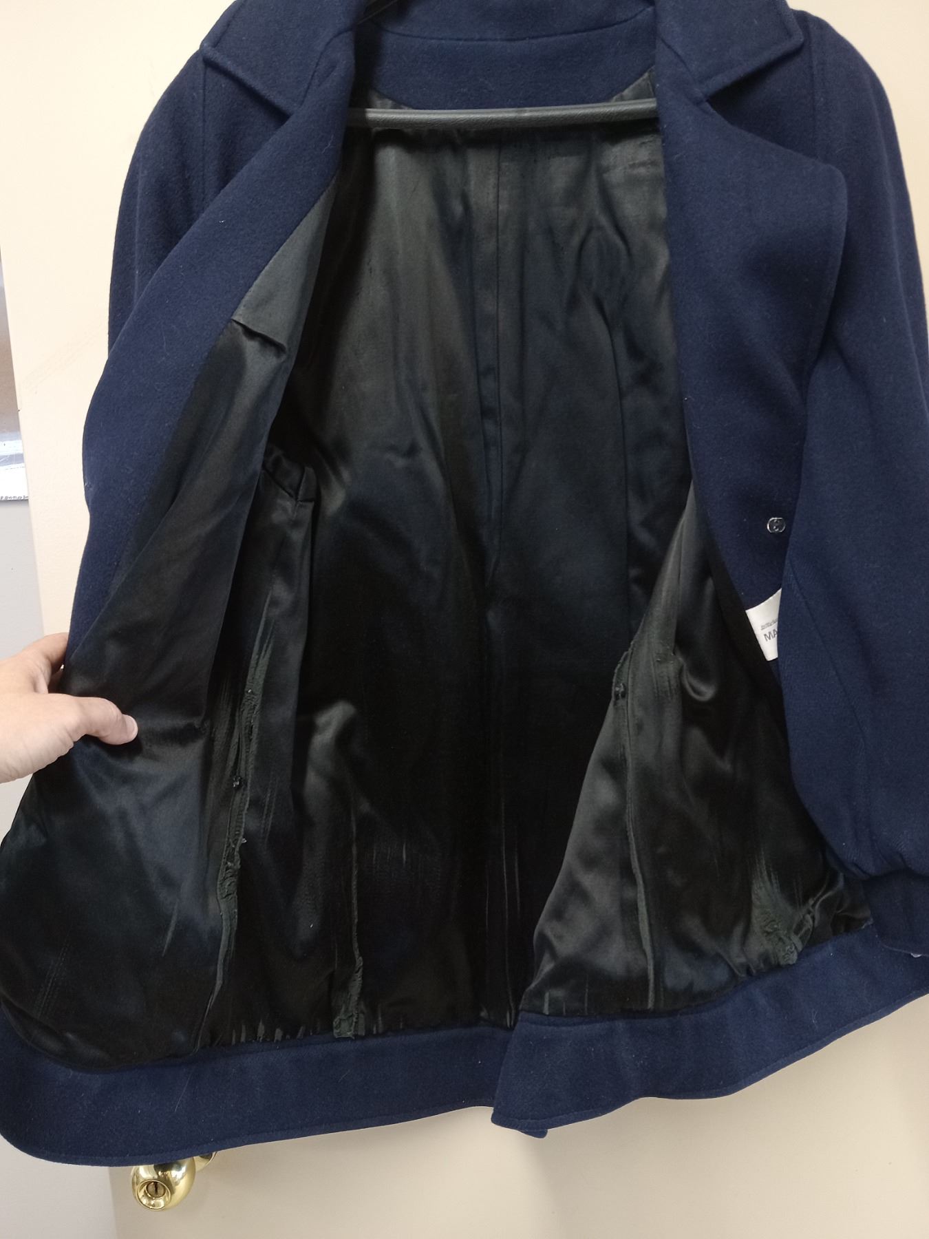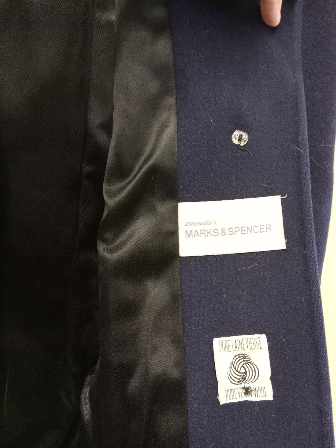 MARK & SPENCES TAILORED BLUE WOOL JACKET (SIZE UNKNOWN) w/ BACK YOKE FLAP