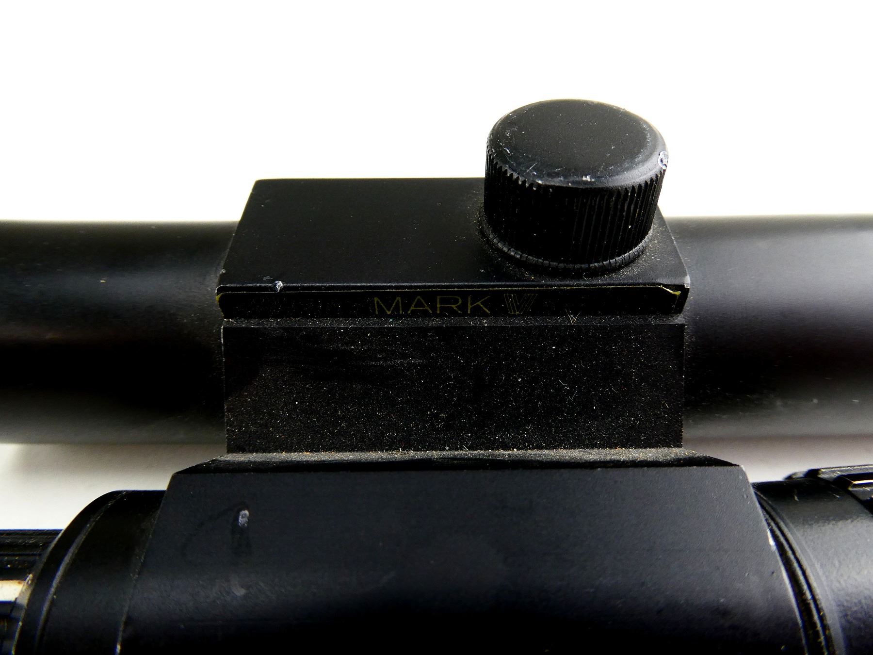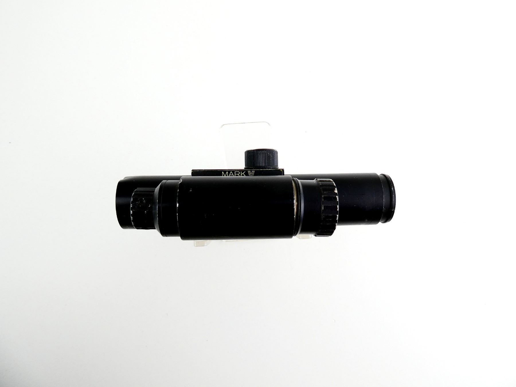 (1) CLEAR OPTICS, WORKING RED DOT RETICLE, WINDAGE & ELEVATION KNOBS TURN, MARKED: "MARK V", UNTESTED, SHOWS WEAR & TEAR / USE MARKS. SEE PHOTOS.