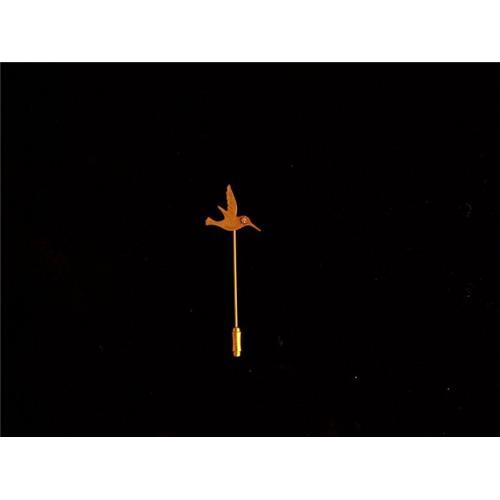 THIS IS A 1/20 14 KT. GOLD FILLED STICK PIN OF A BIRD DESIGN. ITS FEATHERS ARE ETCHED AND HAVE A BEAUTIFUL GOLD DESIGN THROUGHOUT WITH A DIAMOND "EYE". THIS IS A MARVELOUS DESIGNER PIECE, A SMALL D AND NEXT TO IT IS A SMALL C OVER A SMALL E.WOULD LOOK LOVELY ON A LAPEL OR A SWEATER.