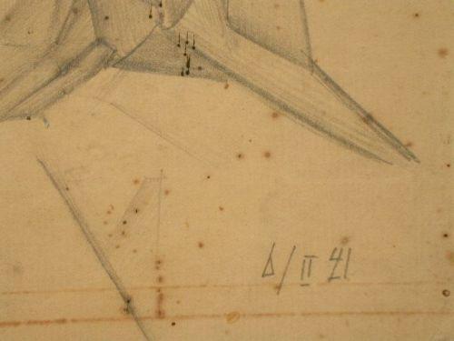 This work is Hand Signed in pencil by the artist with his initials at the middle right margin and Dated in pencil "41" (1941) at the lower right corner.