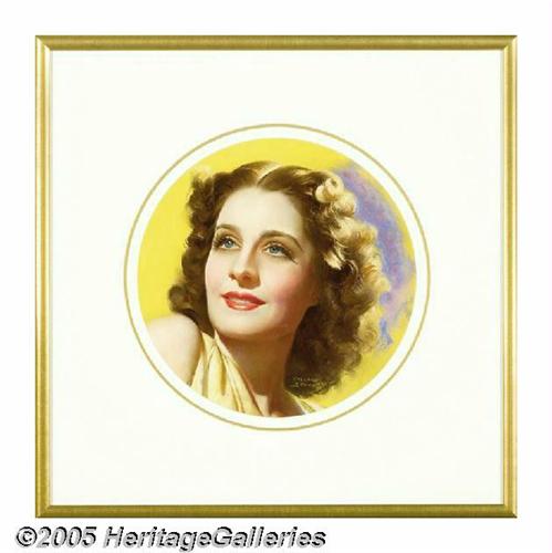 <B>MARLAND STONE (d.1975)</B></I> <BR>Norma Shearer<BR>Original Magazine Cover Art, c.1930 <BR>Pastel on paper <BR>15in. dia.<BR>Signed lower right. <BR><BR>Condition Report: Overall excellent condition<BR>