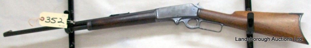 NON-RESTRICTED, LEVER ACTION, 38-55 WIN, 22" BARREL, SN 273672. WOOD BUTT STOCK HAS CRACK REPAIR, BLUING IS BROWN WITH DEEP PITTING ON LEVER, BORE HAS RING MARK 7 INCHES FROM MUZZLE. FRONT SIGHT IS NOT ORIGINAL, BACK SIGHT MISSING PARTS.