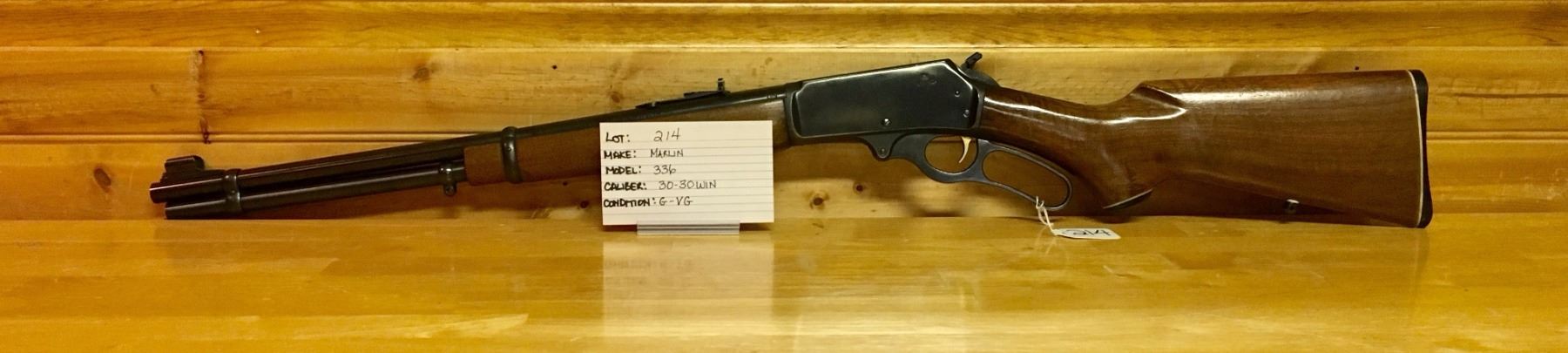 LOT: 214 MAKE: MARLIN MODEL: 336 CALIBER: .30 - 30 WIN CONDITION: G - VG S/N: 20109363
