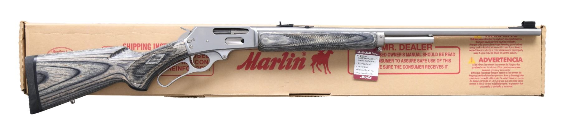 Cal. 35 Rem. S# 93227484. Bbl. 24" round. Hooded ramp front sight w/ sporting rear sight. 2/3 length 5 rd mag. tube. Action features crossbolt safety & fluted bolt. Stainless steel construction. Laminated stock & forearm w/ cut checkering, plastic grip cap, solid black pad & swivel bases. Mfg. 2006-2020. UNATTACHED ACCESSORIES: original box containing, owner's manual data, NRA & shooting sports ads, trigger lock & hammer extension. CONDITION: as new w/ box. (24-3613/DS). MODERN. $1,000-1,500.