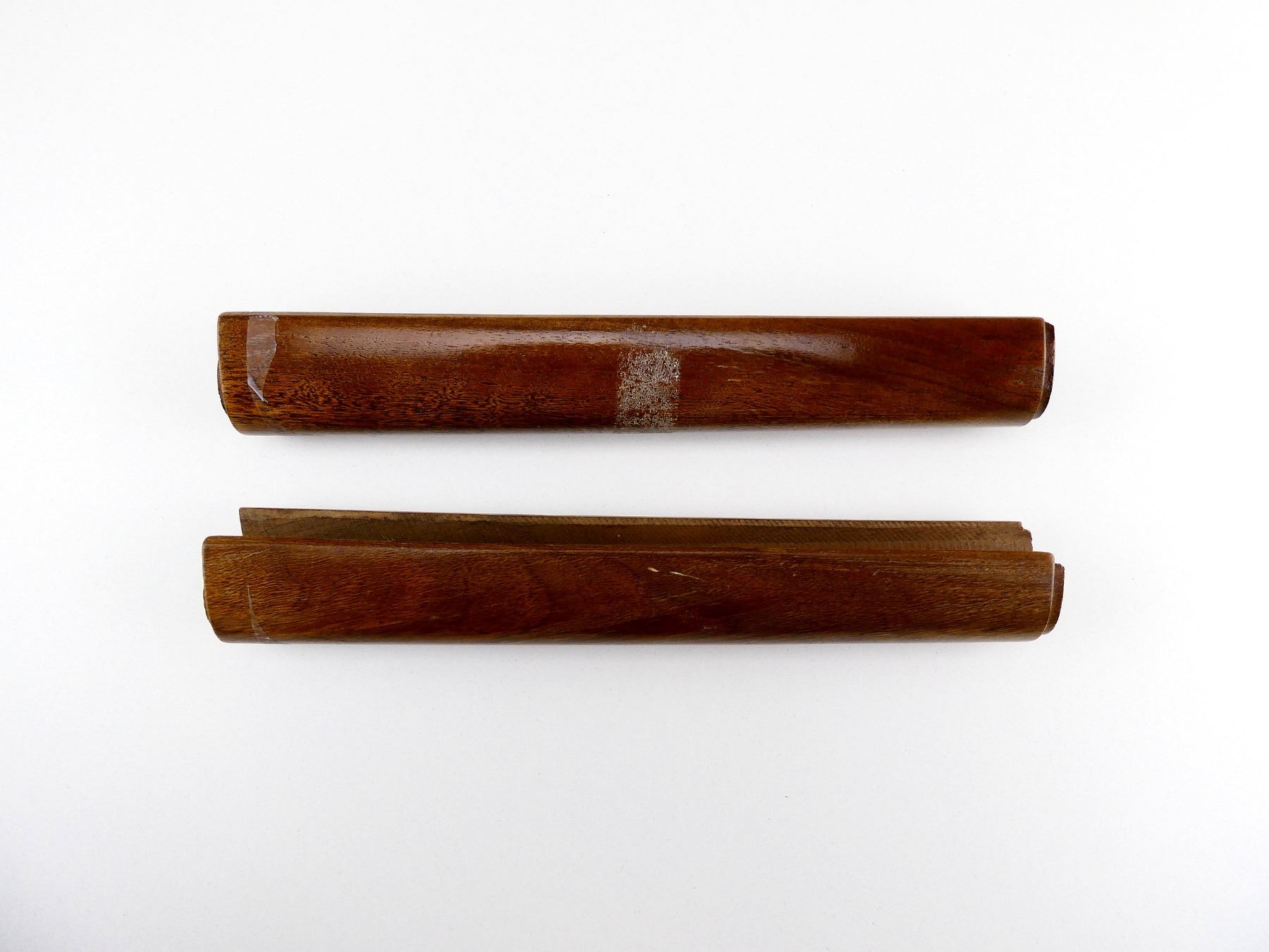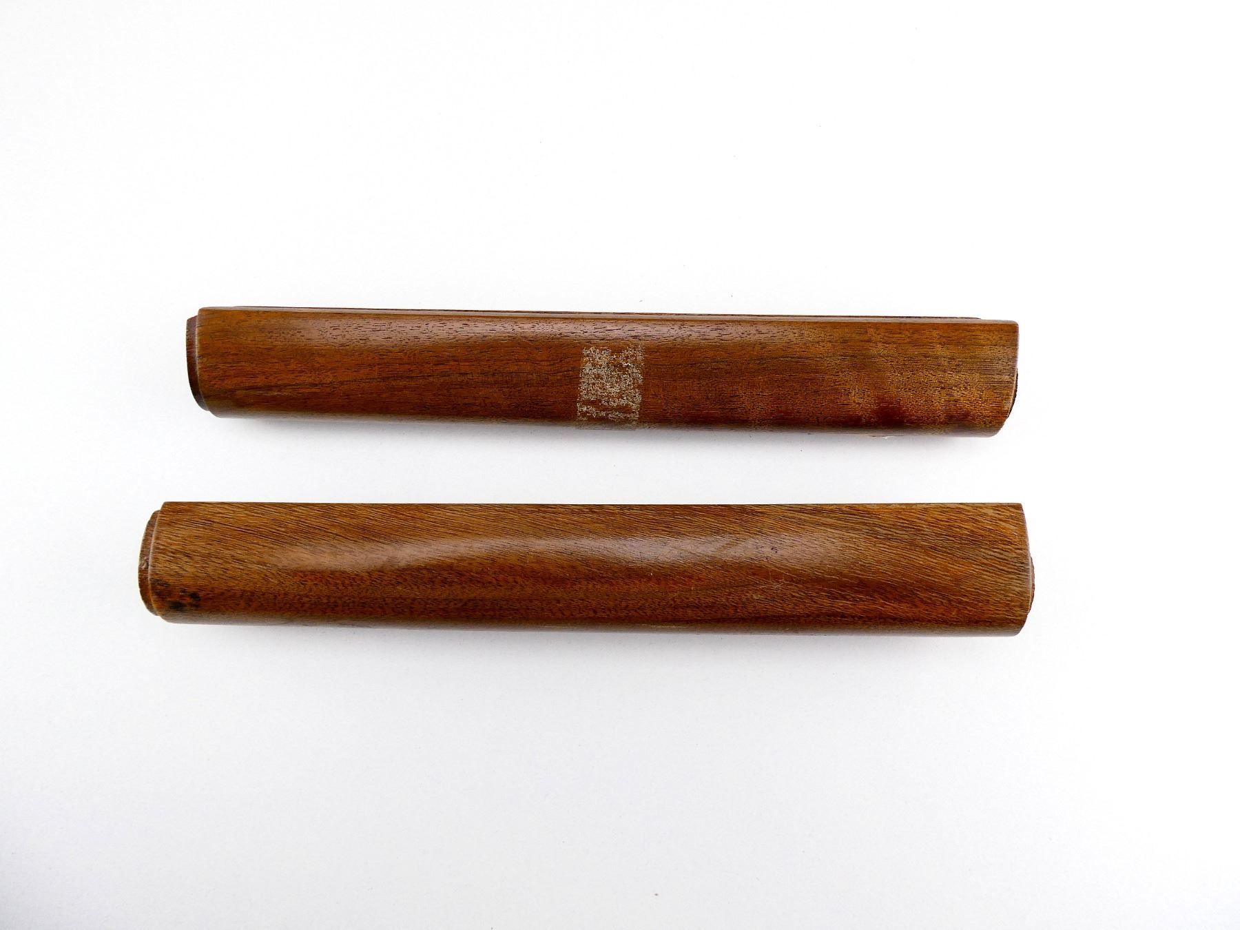 LOT INCLUDES; (2) WOODEN FORENDS, OCTAGON BARREL STYLE, USES NOSE CAP & SCREWS, MAY HAVE SMALL CRACKS & CHIPS, OAL APPROX. 9.5". MAY REQUIRE FITTING. SEE PHOTOS.