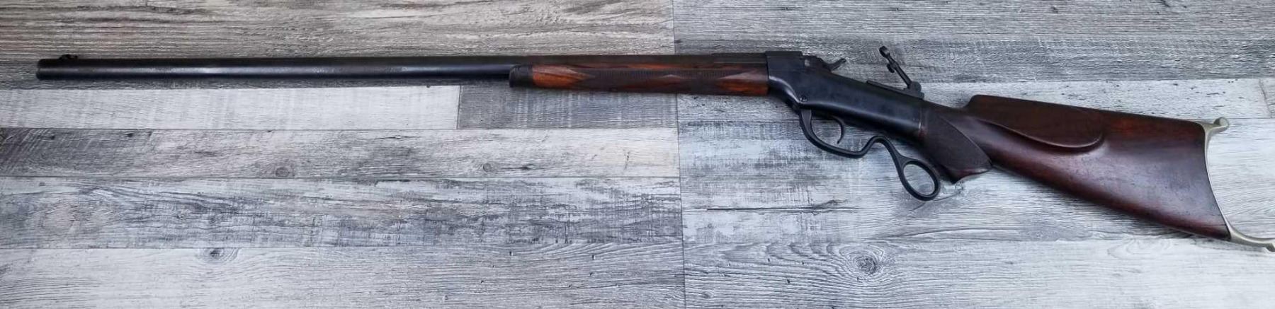 APPEARS TO HAVE AN OLDER REBLUE. GLOBE TYPE FRONT SIGHT. REAR PEEP SIGHT. ORIGINAL REAR SIGHT REMOVED. BORE IS VERY GOOD.