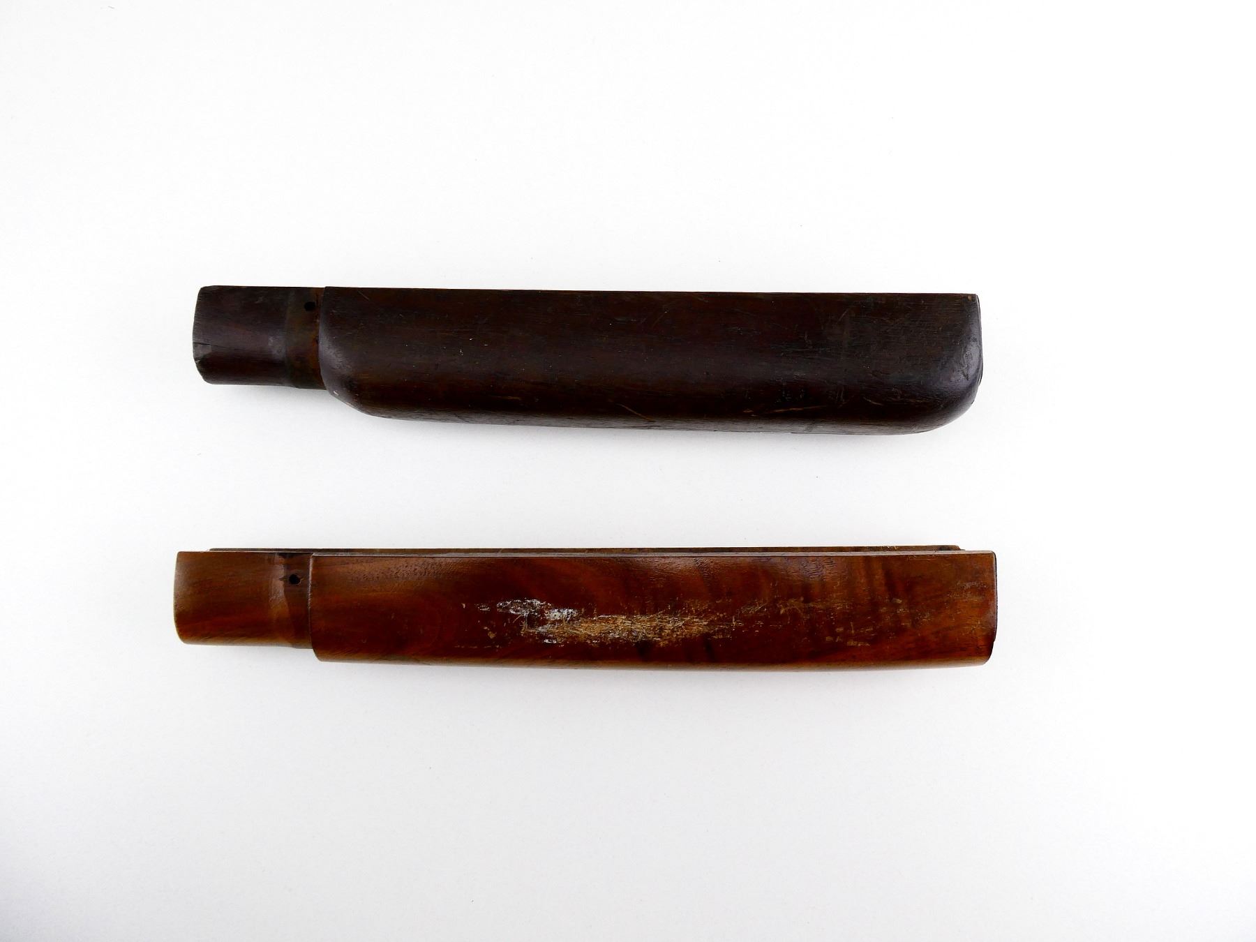 LOT INCLUDES; (2) WOODEN FORENDS, USES BARREL BAND WITH SCREW, MAY HAVE SMALL CRACKS & CHIPS, OAL APPROX. 10". MAY REQUIRE FITTING. SEE PHOTOS.