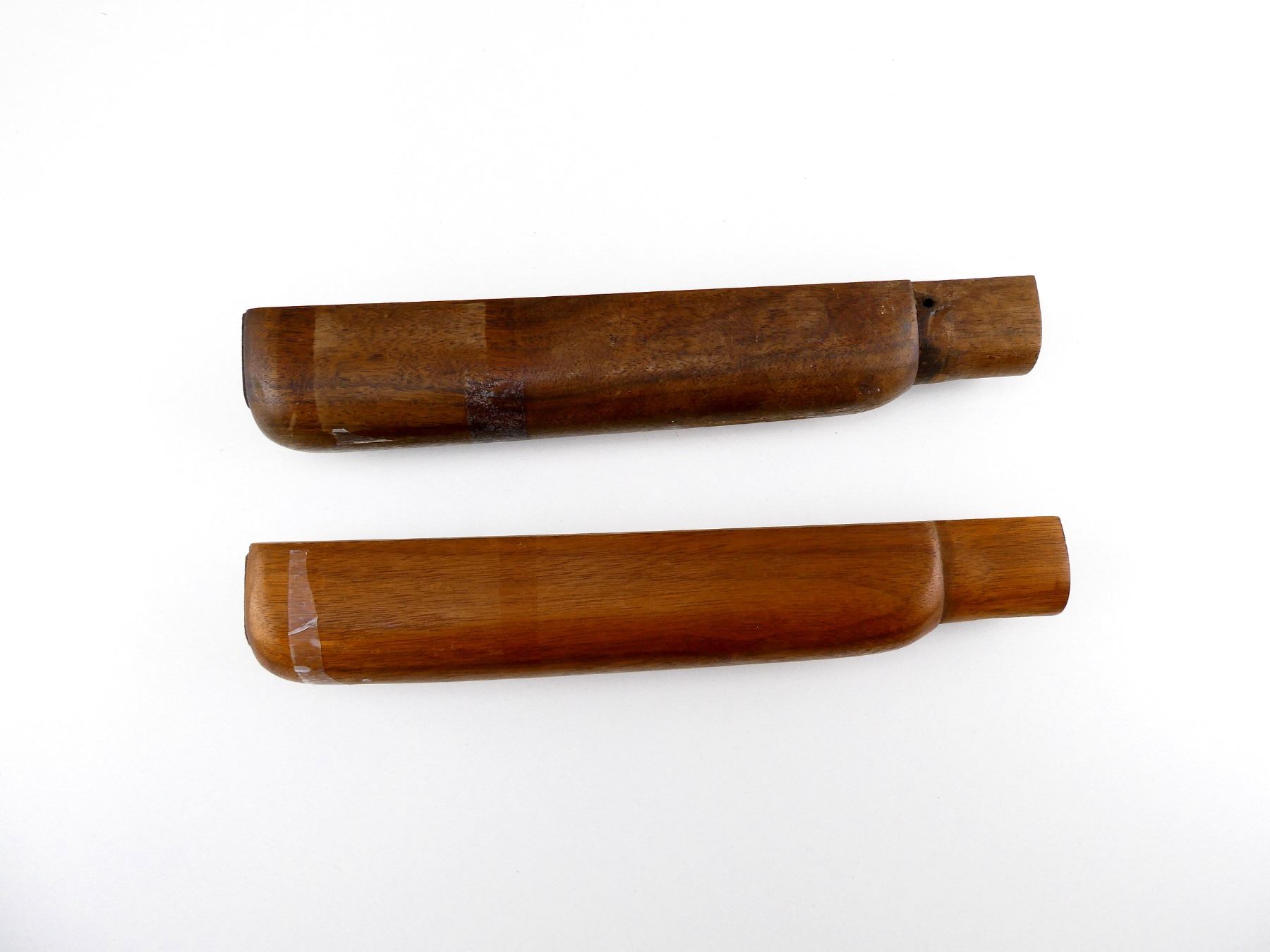 LOT INCLUDES; (2) WOODEN FORENDS, USES BARREL BAND WITH SCREW, MAY HAVE SMALL CRACKS & CHIPS, OAL APPROX. 10". MAY REQUIRE FITTING. SEE PHOTOS.