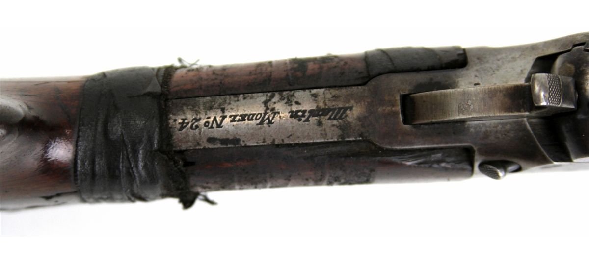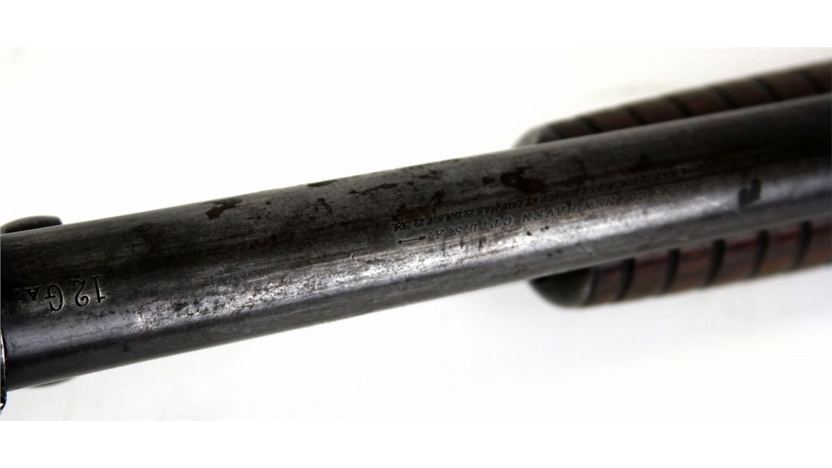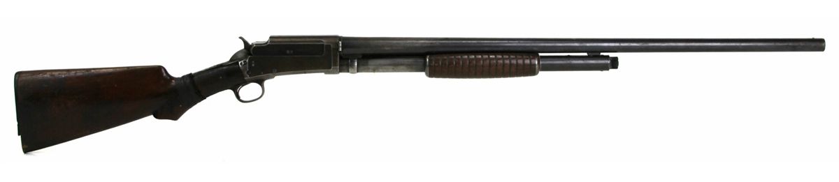 MARLIN MODEL 24 PUMP SHOTGUN 12 GA Type: Shotgun Manufacturer: Marlin Model: 24 Caliber / Gauge: 12 Barrel Length: 29" Serial Number: 103445 Condition: Stock is cracked with old tape repair, broken butt plate. Good overall.