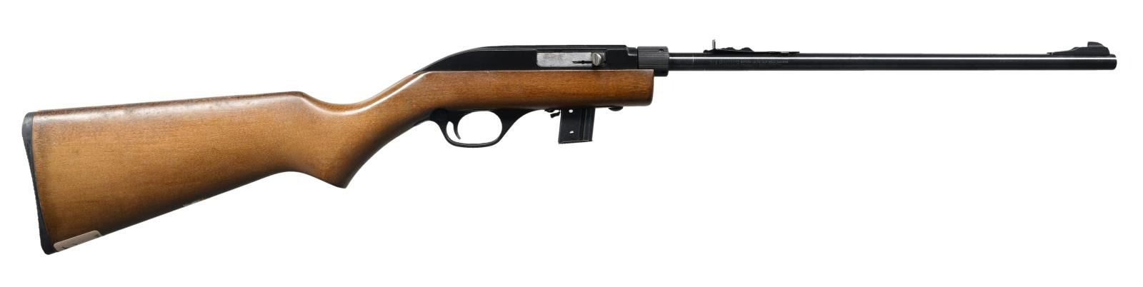 Cal. .22 LR. S# 11168569. Bbl 15-3/8". Black anodized receiver with solid wood buttstock. Blued barrel with blade front sight and square notch rear sight. MAGS: 2 7-round magazines. UNATTACHED ACCESSORIES: Red Marlin Papoose soft case containing spare magazine. CONDITION: Very good, with metal components retaining the majority of their original factory finishes, exhibiting some light wear and some marks from storage and handling. Mirror bore, exhibiting strong rifling throughout. Stock is very good. (23-1736/MLW). MODERN. $200-300