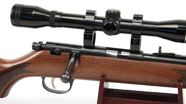 Marlin Model 783 bolt action rifle, chambered in .22WMR, with Tasco scope, and leather sling. Bore is good, bluing is about 85%, and stock is very good, with light field wear. Overall good condition. SN: 19690625 Caliber: .22 Serial #: 19690625